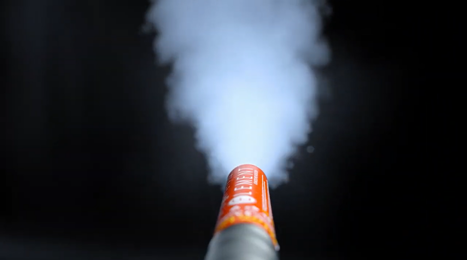 Unlike a dry chemical extinguisher that combats a blaze by depositing a large amount of solid powder on the fire, an Element extinguisher fights a fire by releasing a gas. This gas attaches itself to the oxygen surrounding the fire robbing its ability to stick to the chain of combustion (without affecting ones ability to breath that oxygen). The goal is therefore to use the gas coming out the Element extinguisher to create a ‘cloud of containment’ around a fire. Creating a cloud that prevents any outside and unattached oxygen from getting to the fire is essential and is the same strategy that should also be used with a Halon/Halotron or CO2 extinguisher.